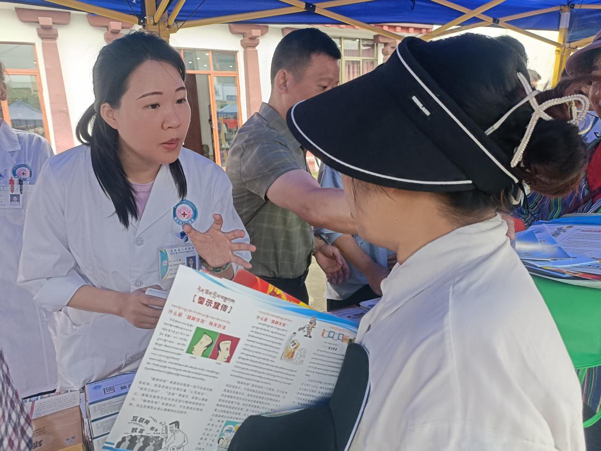 Medics dispatched from the Foshan city of Guangdong province provide free health education for the public in Metog county of the Xizang autonomous region. [Photo provided to chinadaily.com.cn]