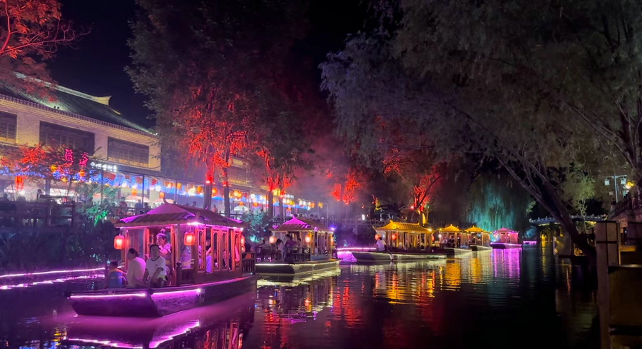 Tourists enjoy boat rides in Yaowan Ancient Town in Xinyi, Xuzhou, East China’s Jiangsu province. [Photo provided to chinadaily.com.cn]