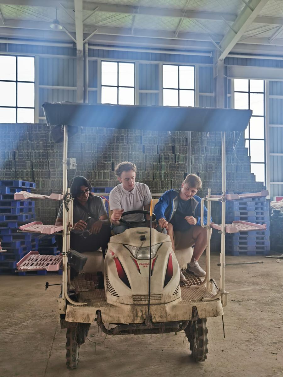 American university students look at a fertilizer applicator in Chongzhou, Sichuan province, on July 14, 2024. [Photo by Huang Zhiling/chinadaily.com.cn]