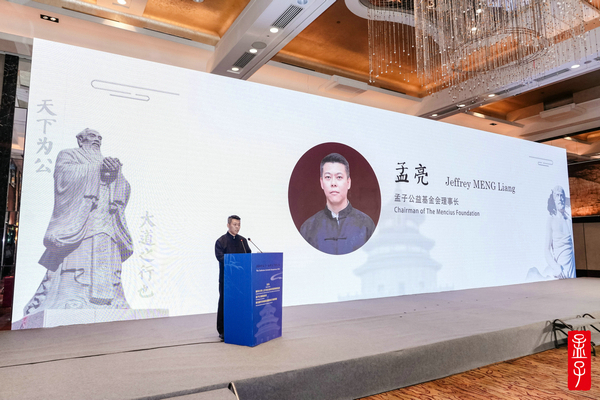 Meng emphasized that Mencius, as the inheritor and advocate of Confucian philosophy, put forward the concepts of "community" and "benevolent governance." He illustrated that Mencius exhorted feudal rulers to look beyond the narrow horizon of their palaces to cultivate a common bond with their ministers, clerks, and the masses and extend their ren, or benevolence, to the governed to preserve their wealth and power.