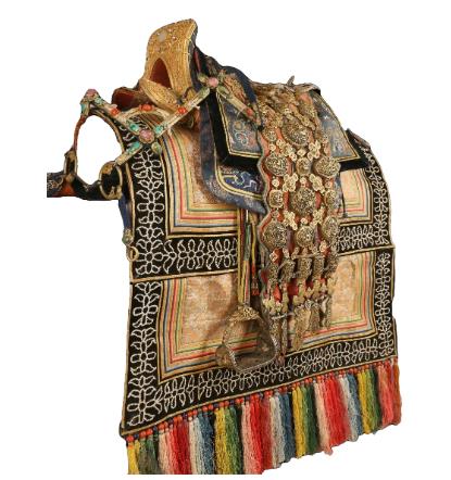 Gilded silver saddle embedded with gems, 18th-19th centuries [Photo/Official WeChat account of Tianjin Museum]
