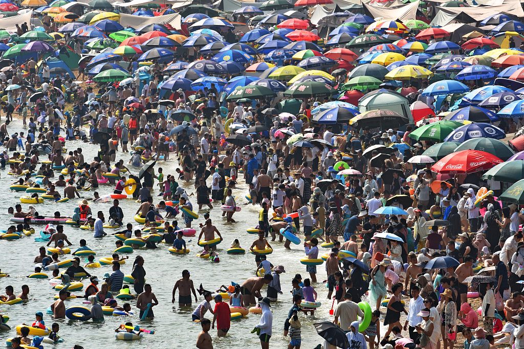 Visitors enjoy the beach in Dalian, Liaoning province, July 21, 2024. [Photo/VCG]