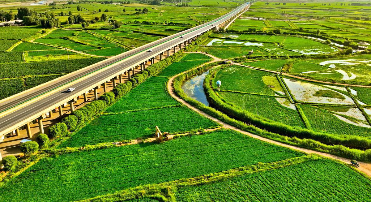 Traversing this idyllic setting are the S237 expressway and the Lanxin Railway, which links Lanzhou in Gansu province and Urumqi in the Xinjiang Uygur autonomous region. Together with the farms, they create a beautiful tapestry of rural ecology.