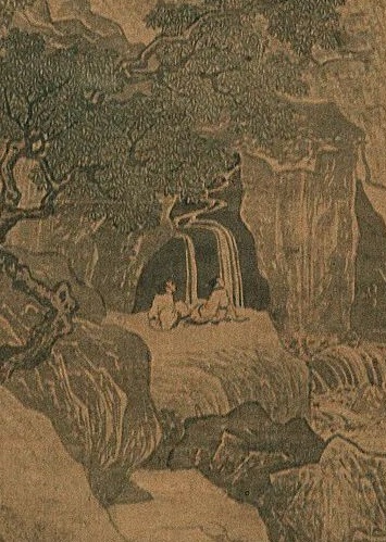 Detail of two gentlemen sitting by the stream, watching the water and listening to the wind [Photo/Official WeChat account of the Nanjing Museum]