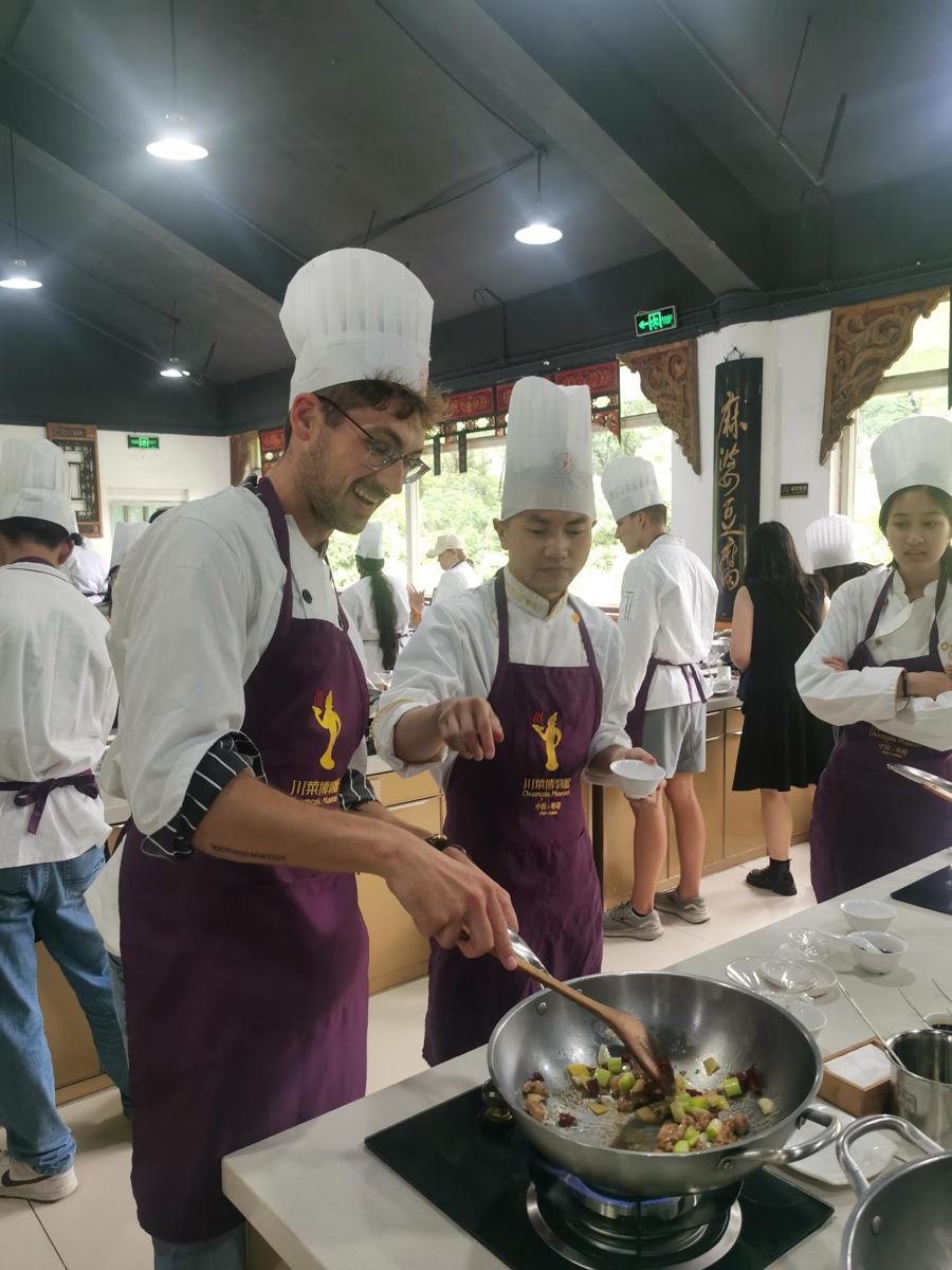 The 44 American students joined 10 students from Peking University on a tour of Sichuan, where they visited a high school, a panda conservation center, and the Sichuan Cuisine Museum. Along the way, they learned about Sichuan's achievements in building the Tianfu Granary, traffic management and the face-changing art of Sichuan Opera. They also stopped by a tea house in the People's Park in Chengdu's city center.