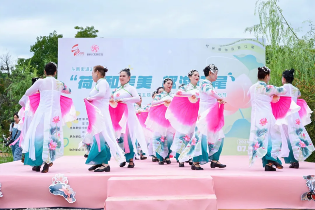 Dancers perform to celebrate the 2024 annual lotus festival of Chenggong district in Kunming, Yunnan province. [Photo provided to km.gov.cn]