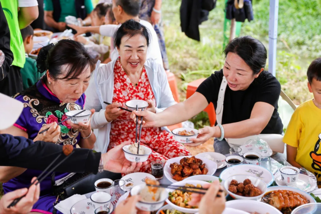 Tourists enjoy local cuisine during the 2024 annual lotus festival of Chenggong district in Kunming, Yunnan province. [Photo provided to km.gov.cn]