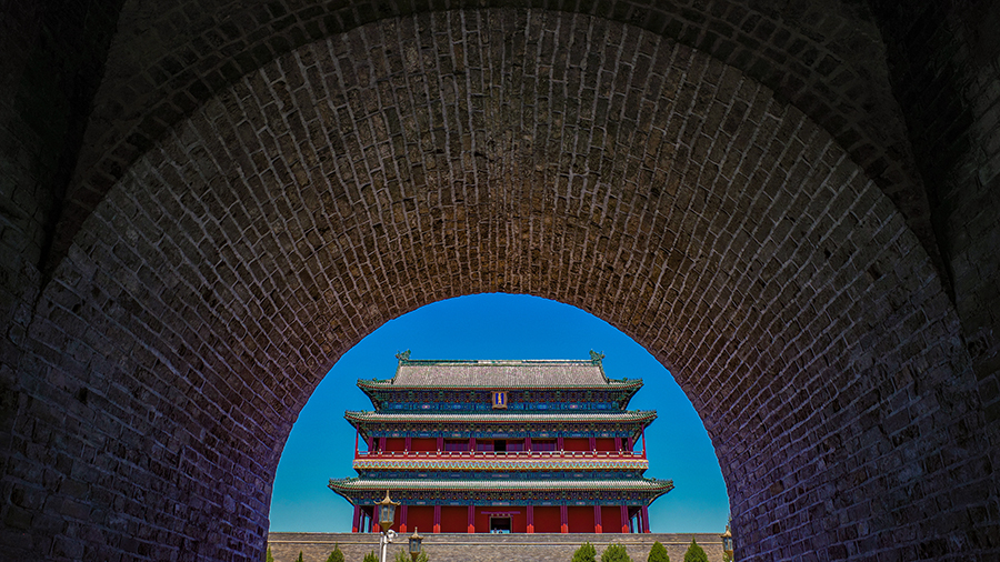 A view of Zhengyangmen Gate stands at the Beijing Central Axis. [Photo provided to chinadaily.com.cn by National Cultural Heritage Administration]