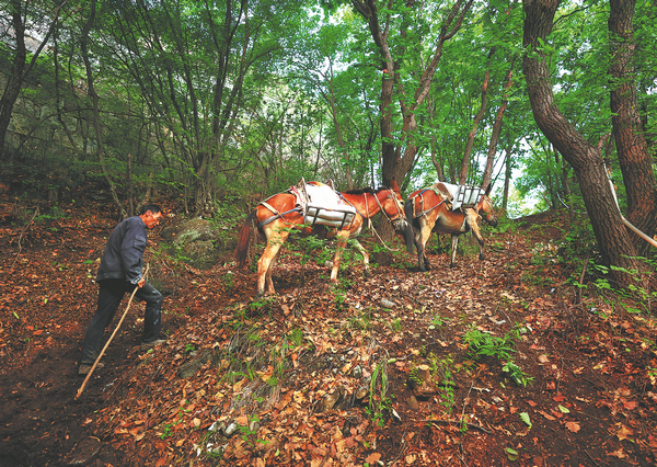 Restoring Jiankou remains challenging, with issues involving getting materials and water to the site. High-pressure water pumps and mules are used to mitigate these difficulties, with mules transporting supplies to a base camp to protect the wall from damage from their hooves. Workers then carry the materials up the steep slopes.