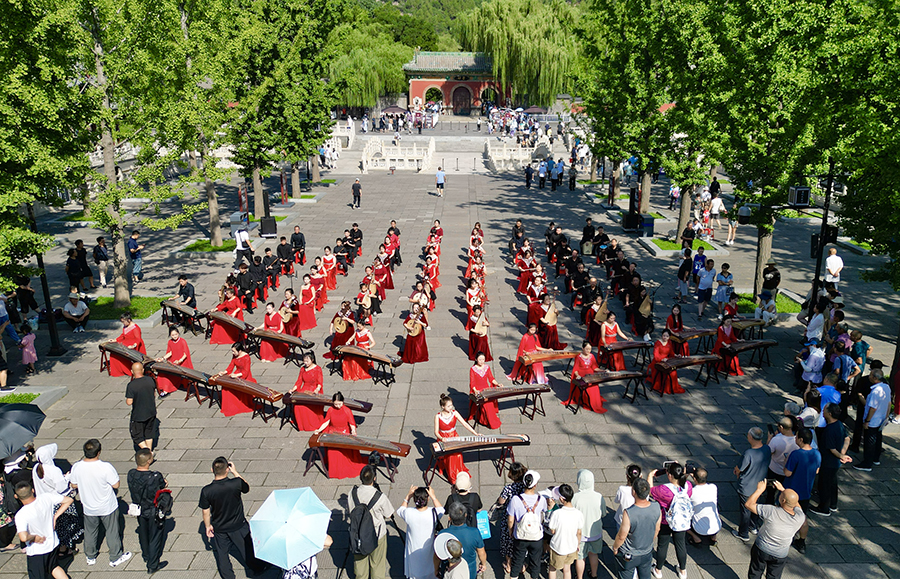 An aerial drone photo taken on August 5 shows the performance at the 2024 Jinci Temple Fair in Taiyuan, Shanxi province. [Photo by Zhu Xingxin/chinadaily.com.cn]