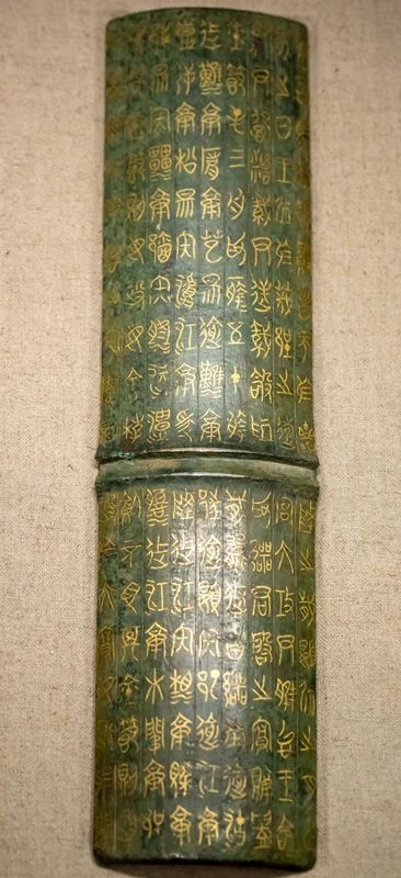 Detail of the gold-inlaid inscriptions on the bronze tax-free tally [Photo/Official WeChat account of the Anhui Museum]