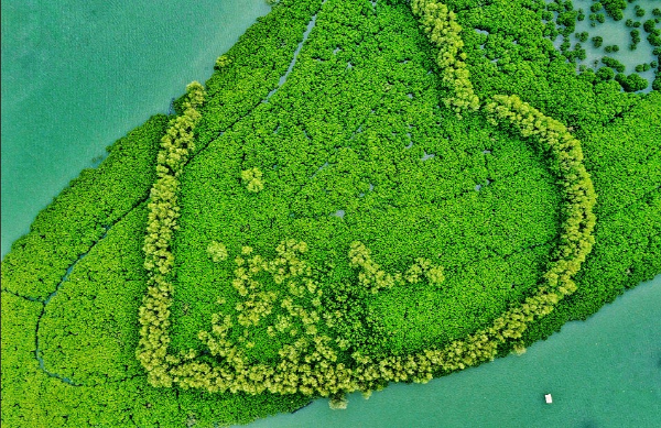 This aerial photo shows Xiatanwei Mangrove Coastal Wetland Ecological Park in Xiamen, Fujian province. [Photo provided to chinadaily.com.cn]