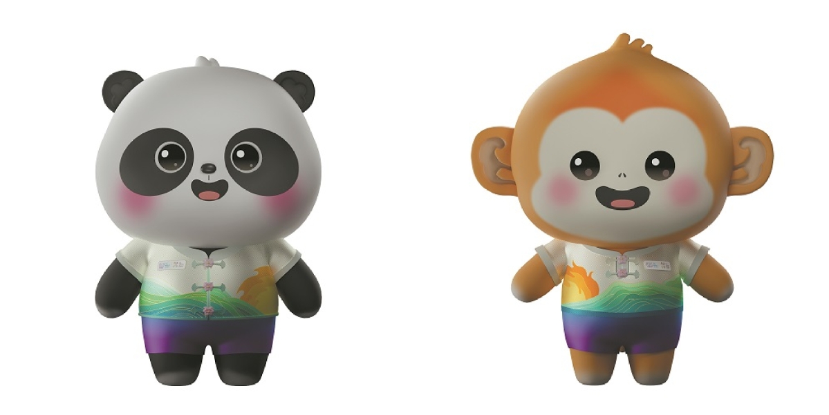 The mascots, "Shu Bao" and "Jin Zai", are inspired by two rare animals found in Sichuan: the giant panda and the golden snub-nosed monkey.