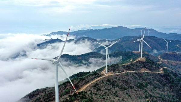 A view of a wind farm in Taizhou, Zhejiang province. [WANG HUABIN/FOR CHINA DAILY]