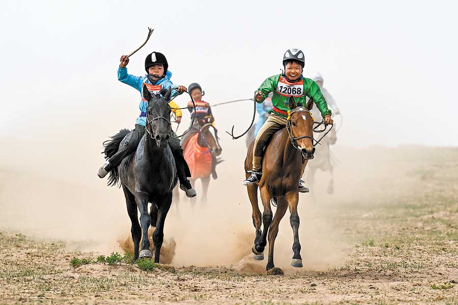 During the 12-kilometer race, riders show their horsemanship.[Photo/Xinhua]