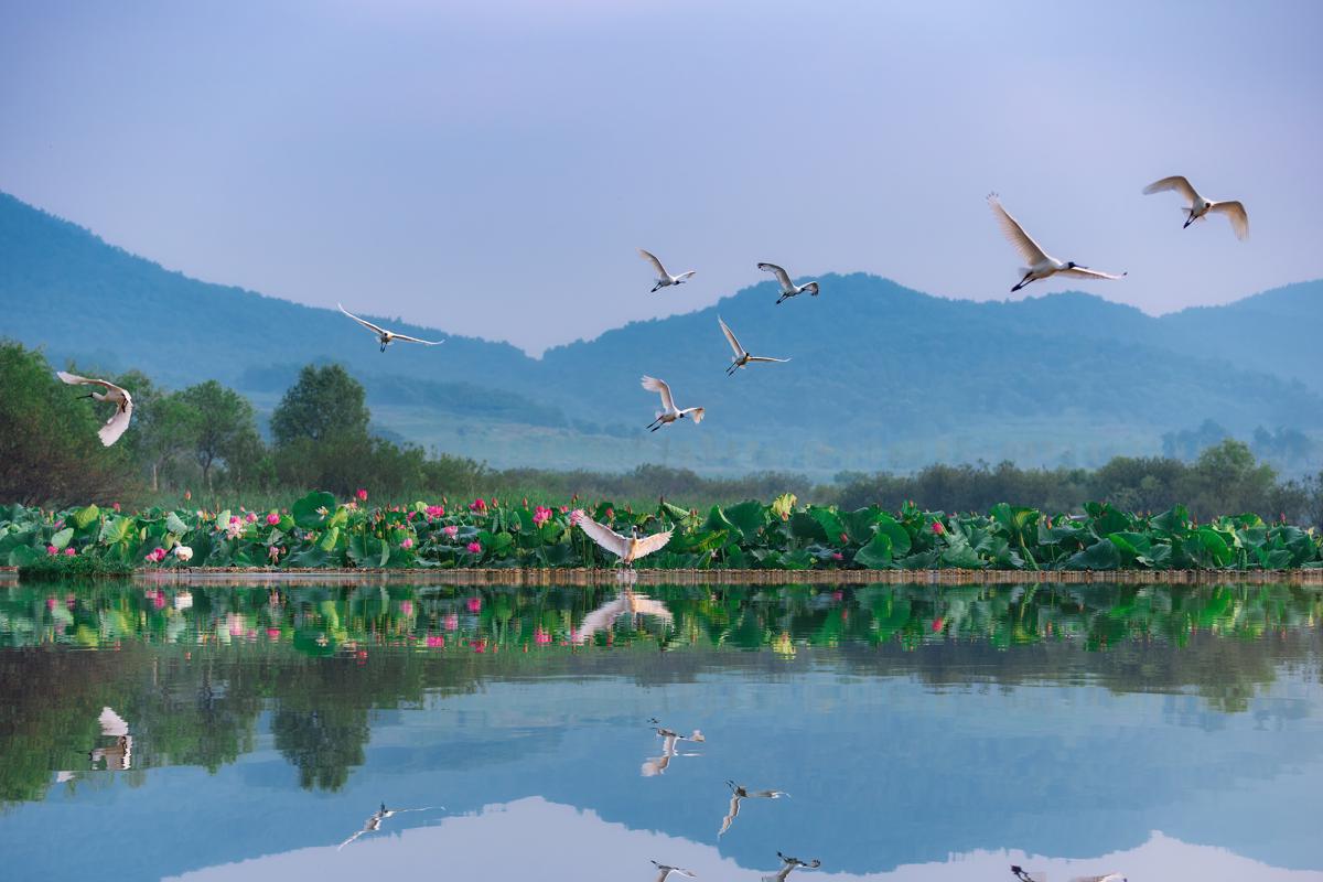 Black-faced spoonbills grace scenic reservoir in Dalian