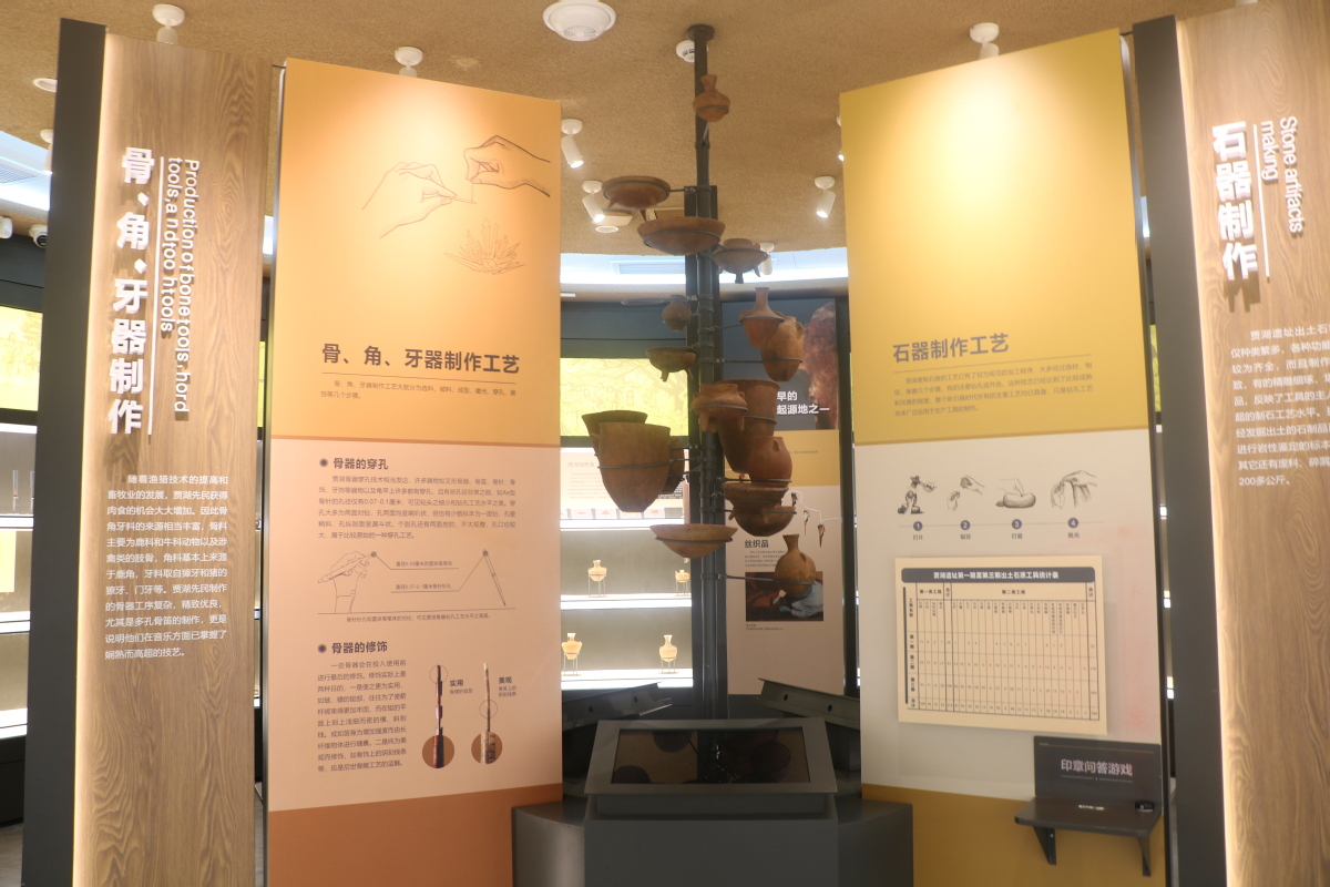 Photo taken on Aug 19 shows the production procedure of artifacts made from bone, horn, teeth and stone, at the Jiahu Site Museum, in Wuyang county, Central China's Henan province. [Photo by Dong Senhe/chinadaily.com.cn]