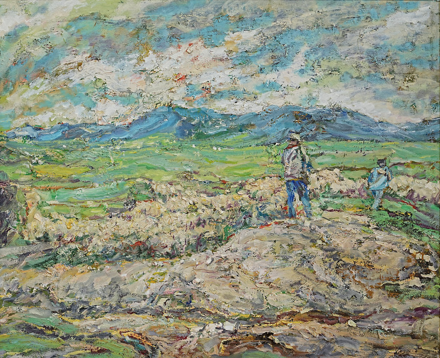 Through his oil works, Zhang Xuefang celebrates his close attachment to the Xinjiang Uygur autonomous region and its people. [Photo provided to chinadaily.com.cn]
