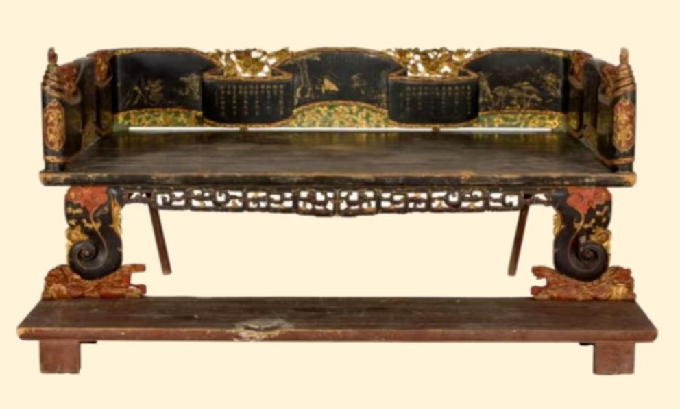 Black-lacquered arhat bed with colored and golden poem and painting motifs, Republic of China, donated by Zhang Zhixian [Photo/Official WeChat account of the Shenzhen Museum]