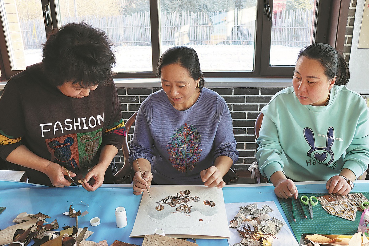 "I've taught 60 to 70 people, including those with disabilities, how to make birch bark pieces in the past 10 or more years. My courses are free of charge and I provide them with all the equipment, including cleaned birch bark, paper and picture frames. I have five to six flexible workers at my workshop and three of them have disabilities. They work with me from May to late September — the town's tourism peak season and I pay them a monthly salary of about 3,000 yuan," she said.