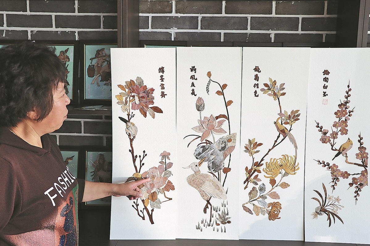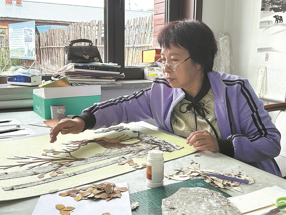 From Bailang town in Arxan city of the region's Hinggan League — an area famous for its lush birch forests — Li has created artworks with birch bark for decades. She collects the bark from dead birch trees or those that fall naturally, cuts the bark into shapes and creatively pieces them together.