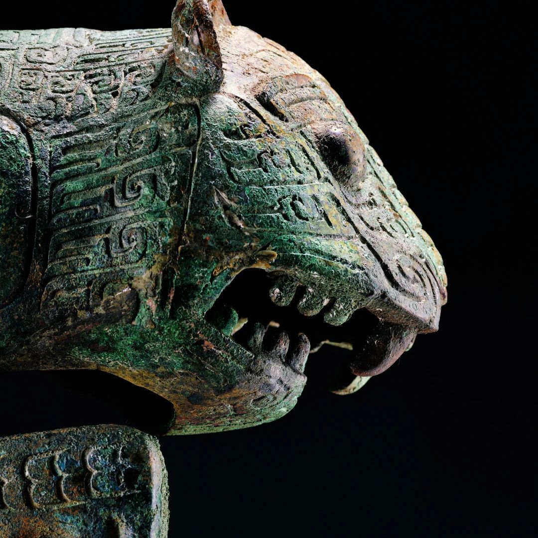 Close-up of the bronze tiger’s open mouth with sharp fangs [Photo/Official WeChat account of the Jiangxi Provincial Museum]