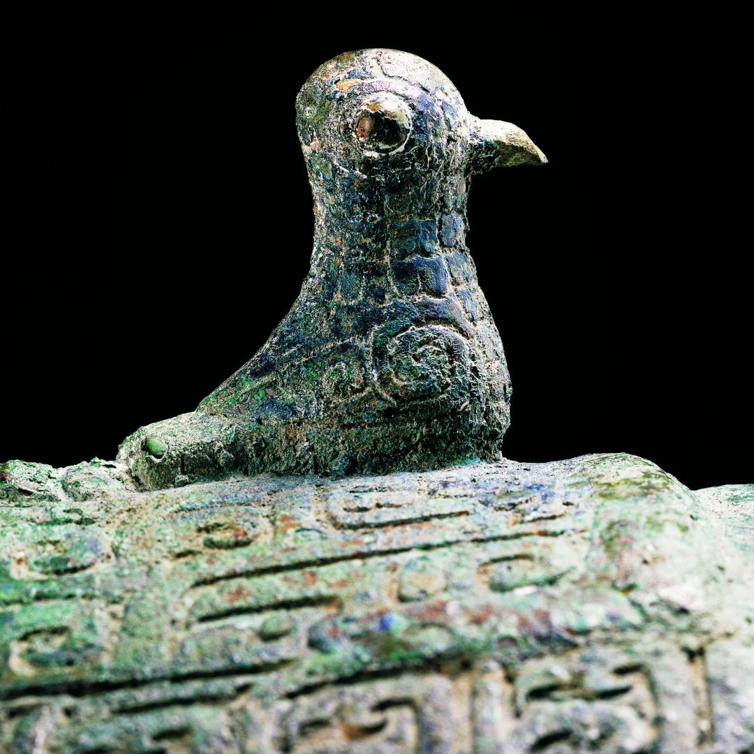 Close-up of the bird perching on the bronze tiger’s back [Photo/Official WeChat account of the Jiangxi Provincial Museum]