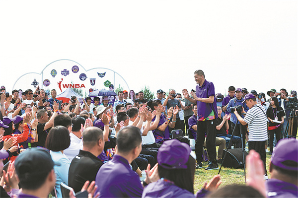 Jin Changsui, the principal of Bayanmankh Central Primary School where the new court was built, hopes the star power of the event will inspire more local children to take up basketball.