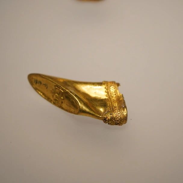 qilin toe-shaped gold piece, resembling a narrow and pointed boot with an oval base [Photo/Official WeChat account of the Jiangxi Provincial Museum]