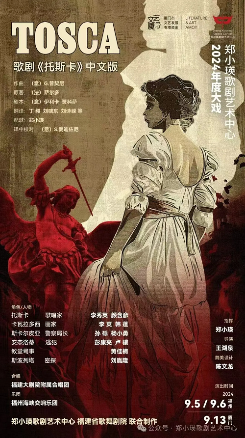 The Chinese version of Puccini's Tosca will be performed at the Fujian Grand Theater on Sept 5 and 6. Supported by the Xiamen Cultural Development Fund and co-produced by the Zheng Xiaoying Opera Center and the Fujian Song and Dance Theatre, this performance promises to be a captivating experience!