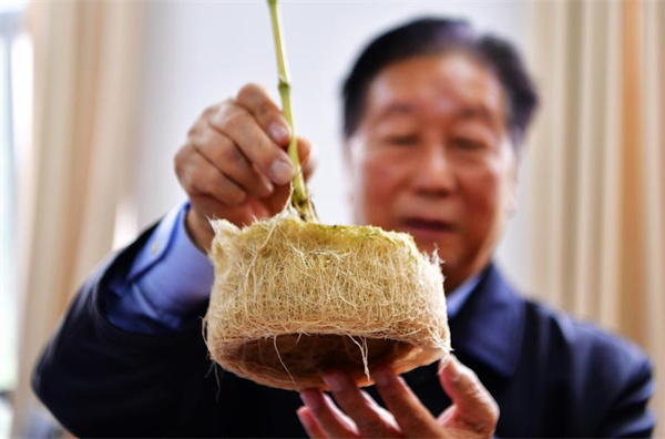 After decades of work, Lin and his team succeeded in selecting and breeding a type of high-yield, drought and salinity-resistant herbaceous plant that can be used as a substitute for wood to grow edible and medicinal mushrooms.