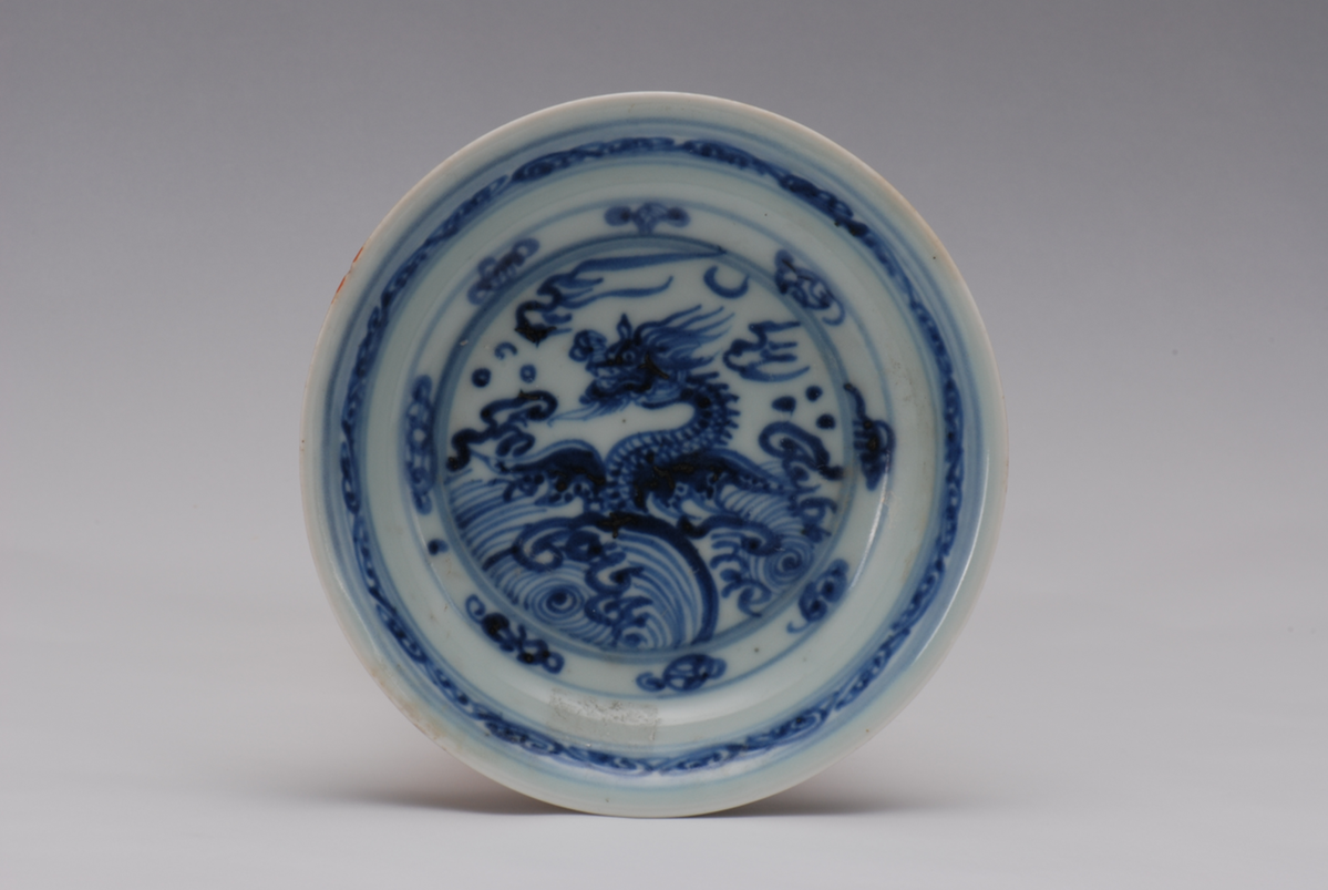 Blue-and-white plate with dragon motifs, Ming Dynasty [Photo/Official WeChat account of the Wuhan Museum]