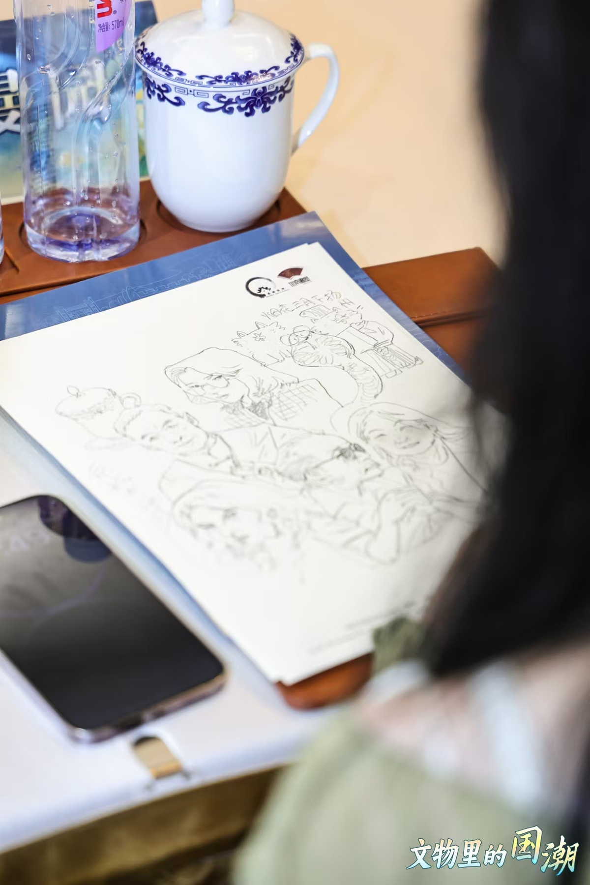 Guest sketches a painting at the sharing meeting on Aug 30, 2024. [Photo provided to chinadaily.com.cn]