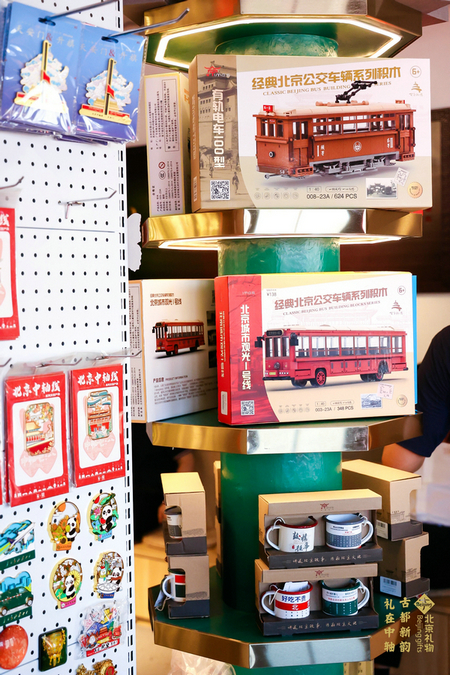 A selection of 80 types of cultural and creative products centered on the Beijing Central Axis were displayed at a showcase event on Friday at Beijing’s Hong’en Temple. [Photo provided to chinadaily.com.cn]