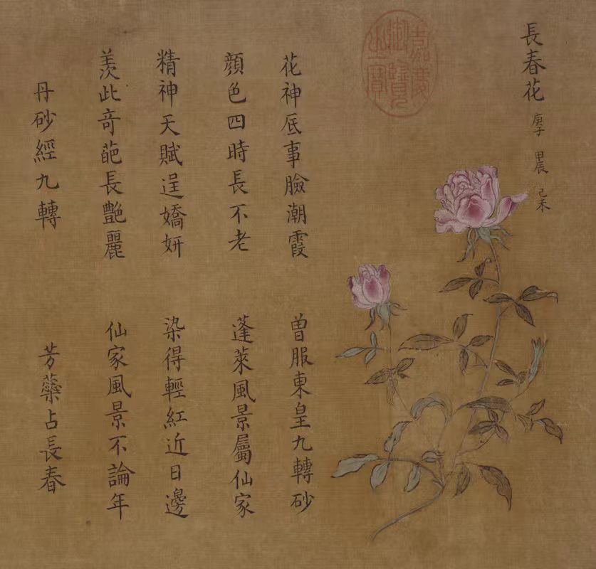Detail of the Chinese roses depicted in the painting [Photo/Official WeChat account of the Jilin Provincial Museum]