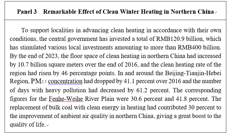 In the construction sector, there has been widespread adoption of solar water heaters and electric cooking appliances. In northern China, clean heating has been actively advanced, replacing coal with clean and low-carbon energy such as electricity, natural gas, biomass, geothermal energy, and industrial exhaust heat. In 2023, the share of clean heating reached nearly 80 percent in northern China.