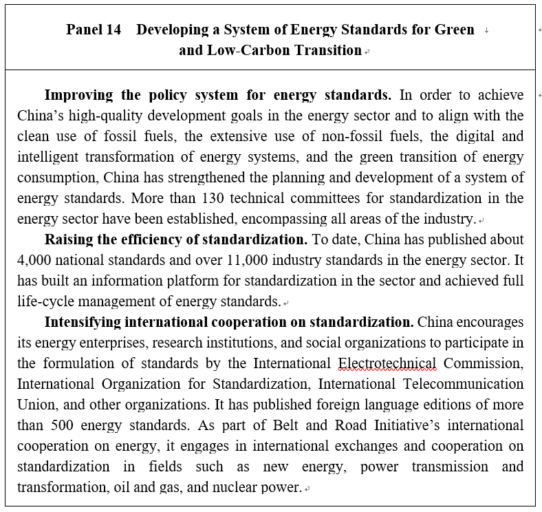 China has been accelerating the transformation of government functions and bringing into full play the strategic guiding role of national development plans. It has strengthened the coordination of fiscal, taxation, investment, financing, and other macroeconomic policies, reinforced market regulation, and improved its public services, in order to ensure both efficiency and fairness in its energy transition.
