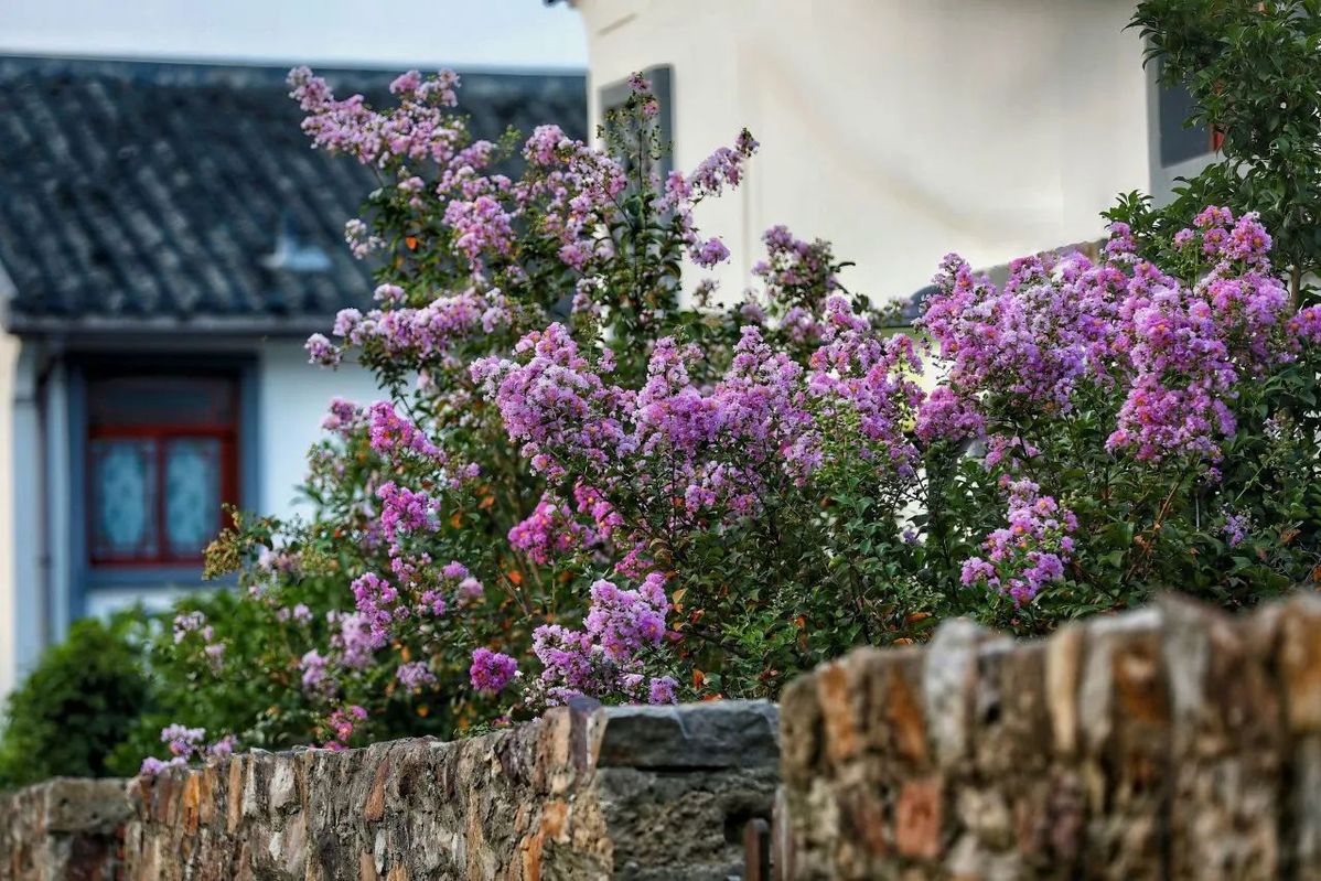 This is the perfect time to discover the breathtaking beauty of Yangshan town, Huishan district, Wuxi, Jiangsu province. Immerse yourself in the captivating sight of blooming crape myrtle trees and embrace the romantic display of flowers.