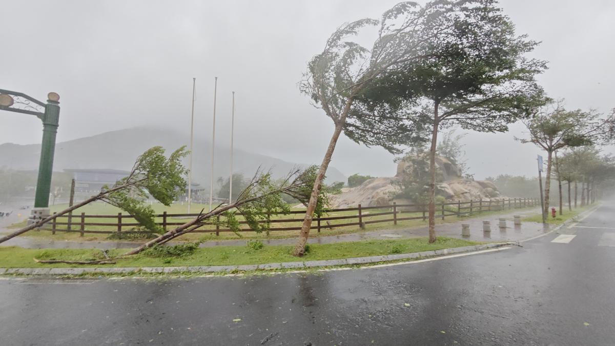 Trees are seen bending under the force of the wind as Typhoon Yagi approaches Longlou town, Wenchang city, in Hainan province, on Friday morning. [Photo by Fu Yuchao/For chinadaily.com.cn]