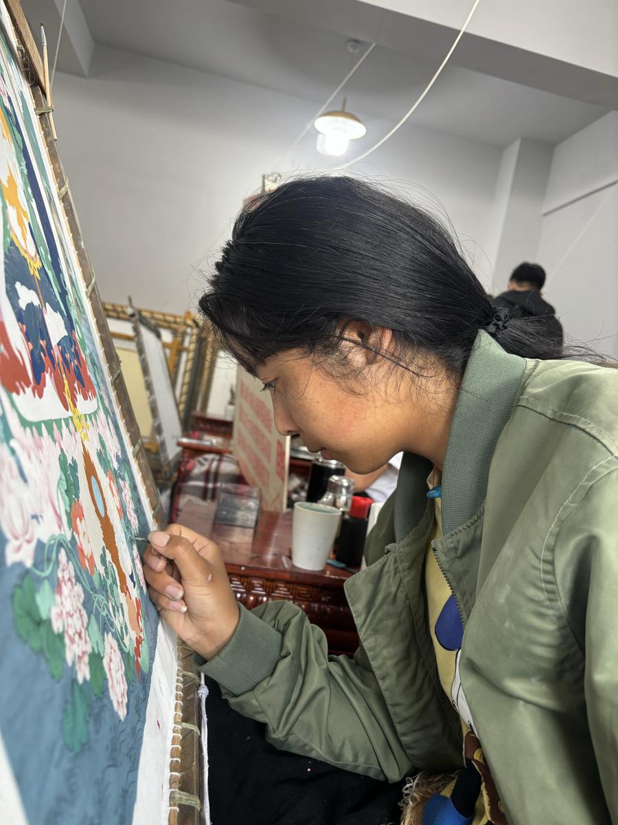 painting at the Xizang Thangka Painting Institute in Lhasa, capital of the Xizang autonomous region. [Photo by Palden Nyima/chinadaily.com.cn]