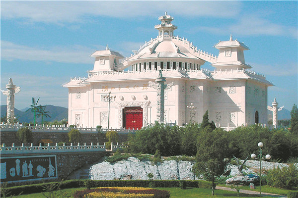 The white marble cultural palace built by Liu's team features reclining dragons on the dome and patterns of seismography and ancient books, highlighting the cultural significance and strength of the material. [Photo provided to China Daily]