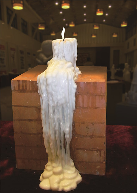 A candle fashioned out of white marble. [Photo provided to China Daily]