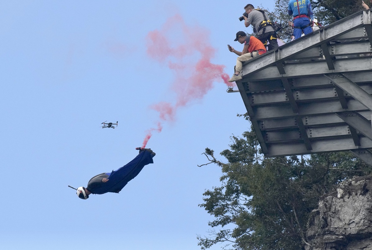 The 10th World Wingsuit League Wingsuit Flying World Championship kicks off at the Tianmen Mountain National Forest Park in Zhangjiajie, Hunan province, Sept 16, 2024. [Photo by Zhou Guoqiang/For chinadaily.com.cn]