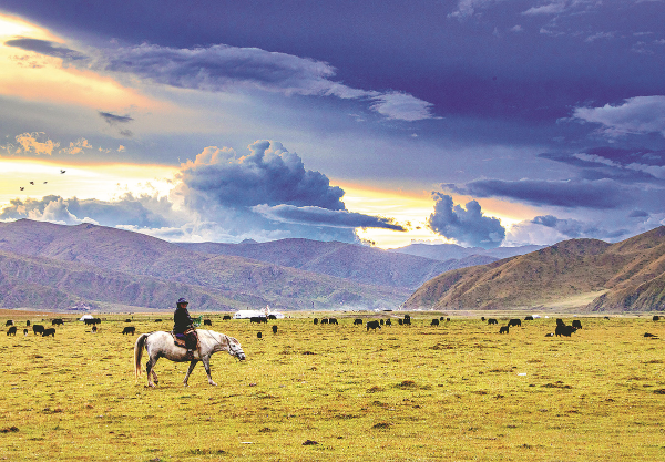 A herder rides a horse on a grassland in Aba county, Sichuan, in September 2020. [LIU GUOXING/FOR CHINA DAILY]