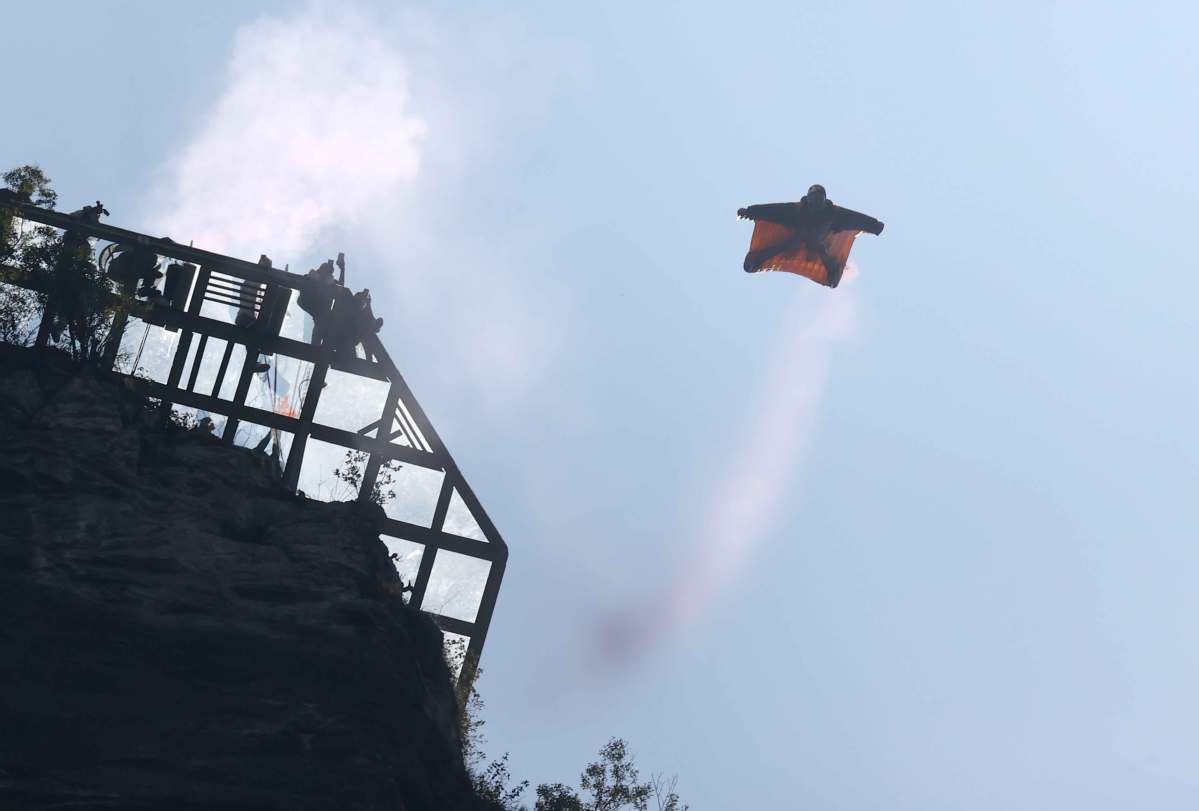 The world's top 16 fliers competed in the tenth World Wingsuit League Wingsuit Flying World Championship, held at the Tianmen Mountain National Forest Park in Zhangjiajie from Monday to Thursday.