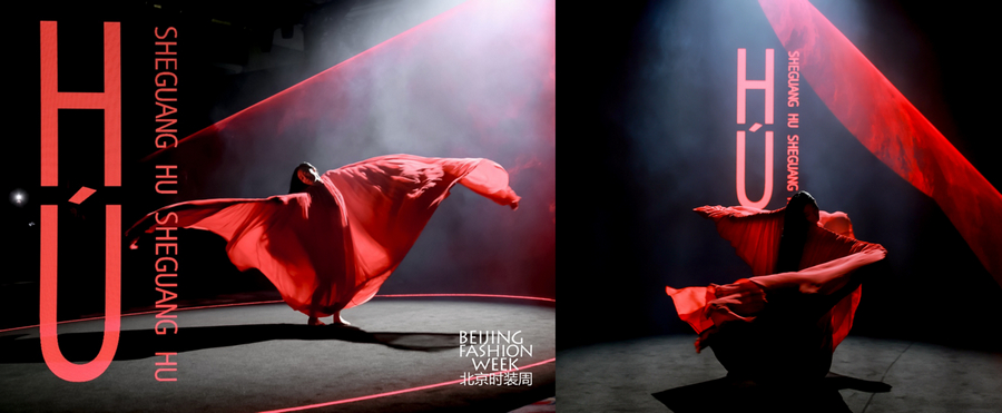 Clad in a flowing red dress, dancer Guo Shuang kicked off the fashion show with a nesmerizing solo performance set to the ethereal singing of Manchurian musician Bayin Hehe.
