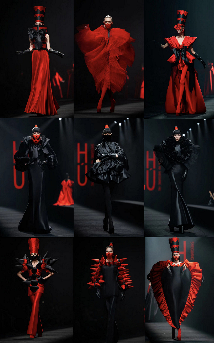 Hu's new creations highlight the designer's longstanding commitment to integrating Chinese cultural elements into fashion. The bold, maverick couturier celebrated his Mongolian heritage by drawing inspiration from traditional Mongolian clothing and accessories. Believing that fashion is all about innovation and breaking boundaries, Hu has transformed dongbei dahua, a lowly print popular in Northeast China's rural areas, into sought-after high fashion.