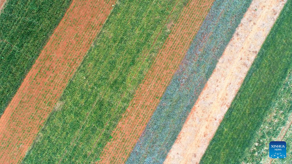 This aerial photo taken on May 26, 2023 shows the fields which are mainly planted with pineapples in Qujie township of Xuwen county, Zhanjiang city, South China's Guangdong province. [Photo/Xinhua]