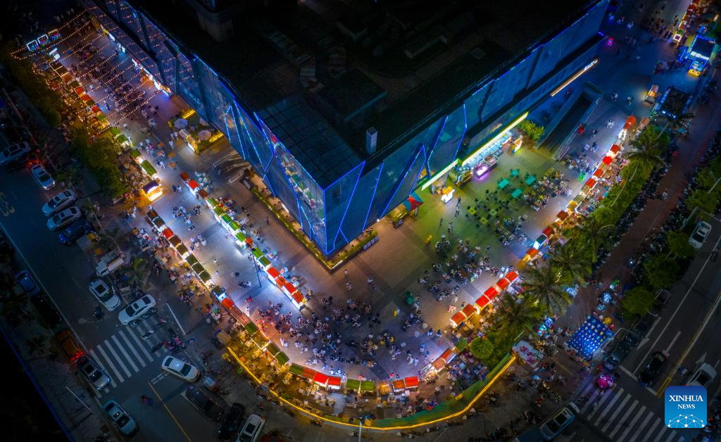 This aerial photo taken on May 25, 2023 shows a night market in Zhanjiang city, South China's Guangdong province. [Photo/Xinhua]