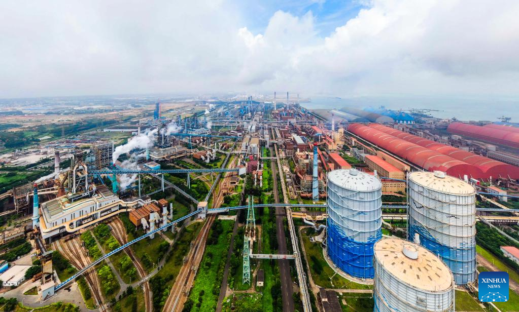 This aerial photo taken on May 25, 2023 shows the factory of Baosteel Zhanjiang Iron & Steel Co Ltd in Donghai Island of Zhanjiang city, South China's Guangdong province. [Photo/Xinhua]